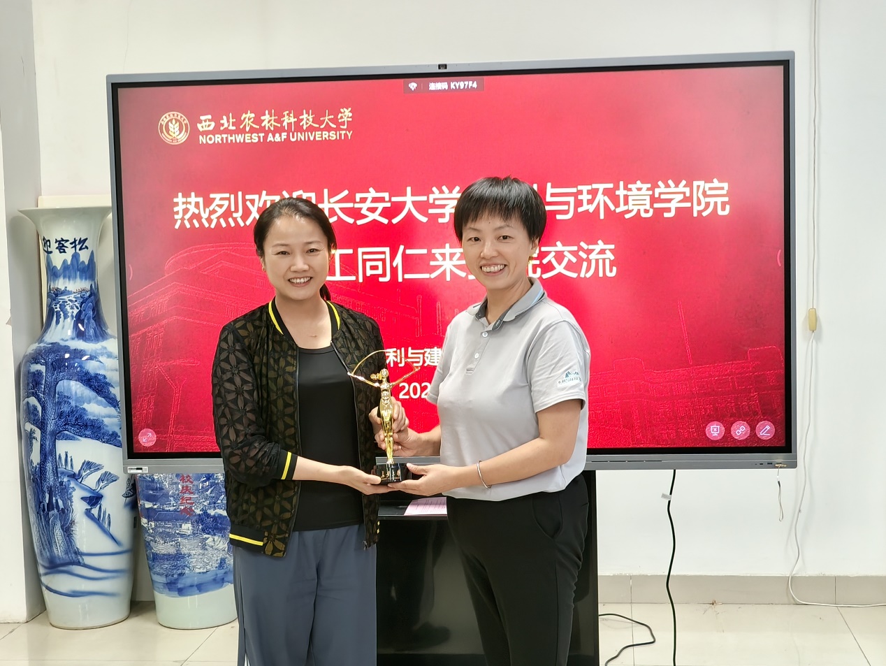 随后,我院学工团队与西北农林科技大学水利与建筑工程学院学工团队座谈交流。座谈会伊始,西农水建学院党委副书记张成凤对我院的来访表示欢迎,她详细介绍了水建学院总体学生工作情况,包括招生数量、学科构成、学风建设、队伍建设等。随后,王妍对我院学生工作特色和成效进行了介绍,并表示这次调研座谈对我院学工团队来说是一次非常好的学习机会,希望双方能够相互学习、相互借鉴。最后,双方辅导员就学生党建、思政教育、团学工作、学生安全管理、升学就业等共同感兴趣的话题及推进中存在的问题,进行了深入交流与探讨。