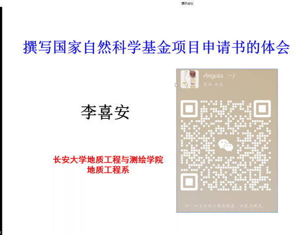 李喜安以“撰写国家自然科学基金项目申请书的体会”为题作报告,从题目、摘要、立项背景、研究方案、研究内容、可行性分析、研究基础等方面分享了他在申报书撰写申报经验,同时还结合自己申报重点基金的汇报视频对国家自然科学基金申报中的关键要素进行了详细解读。
