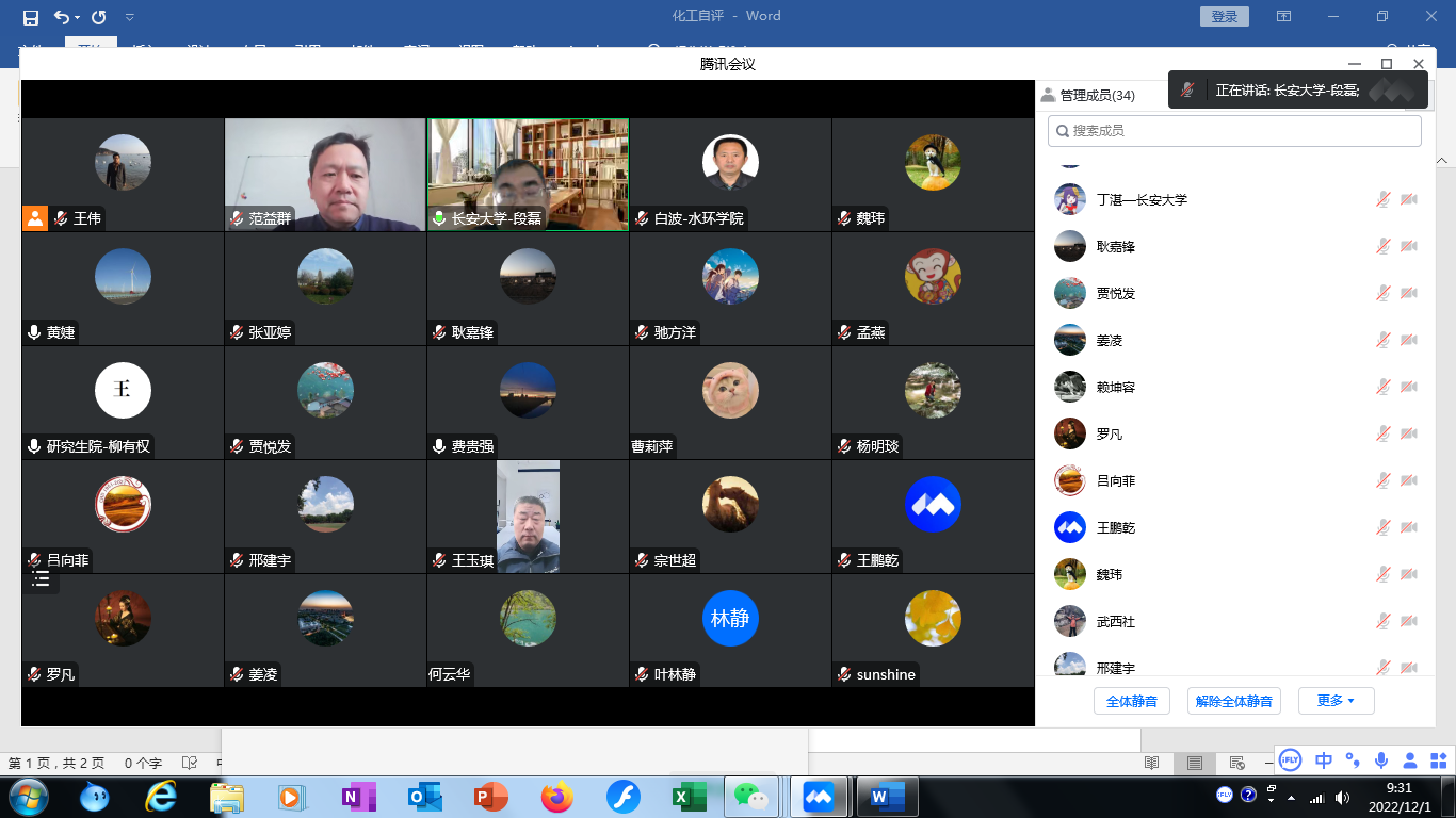 12月1日,水环学院化学工程与技术一级学科硕士点专项评估会议在线上召开,会议邀请了第八届国务院学位委员会学科评议组成员、南京工业大学范益群教授,华东理工大学黄婕教授,西北大学王玉琪教授,陕西科技大学费贵强教授和西安科技大学张亚婷教授作为评审专家。yl8cc永利线路检测中心研究生院副院长柳有权、水环学院领导班子成员、化工系与化工实验中心全体教师以及研究生代表共40余人参加了会议,会议由水环学院副院长段磊主持。