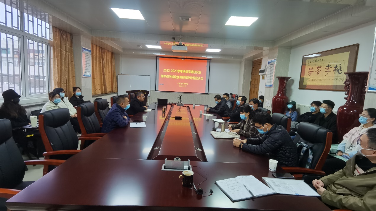 为进一步做好本学期的教学质量评价工作,全面了解教学运行实际情况,及时解决教学中存在的问题,11月11日,我院在学院三楼会议室召开2022-2023学年秋季学期研究生期中教学检查及课程思政专题座谈会。学院党委书记邓红章、副书记王妍、副院长段磊、校院两级教学督导及教师代表和学生代表参加,段磊主持会议。