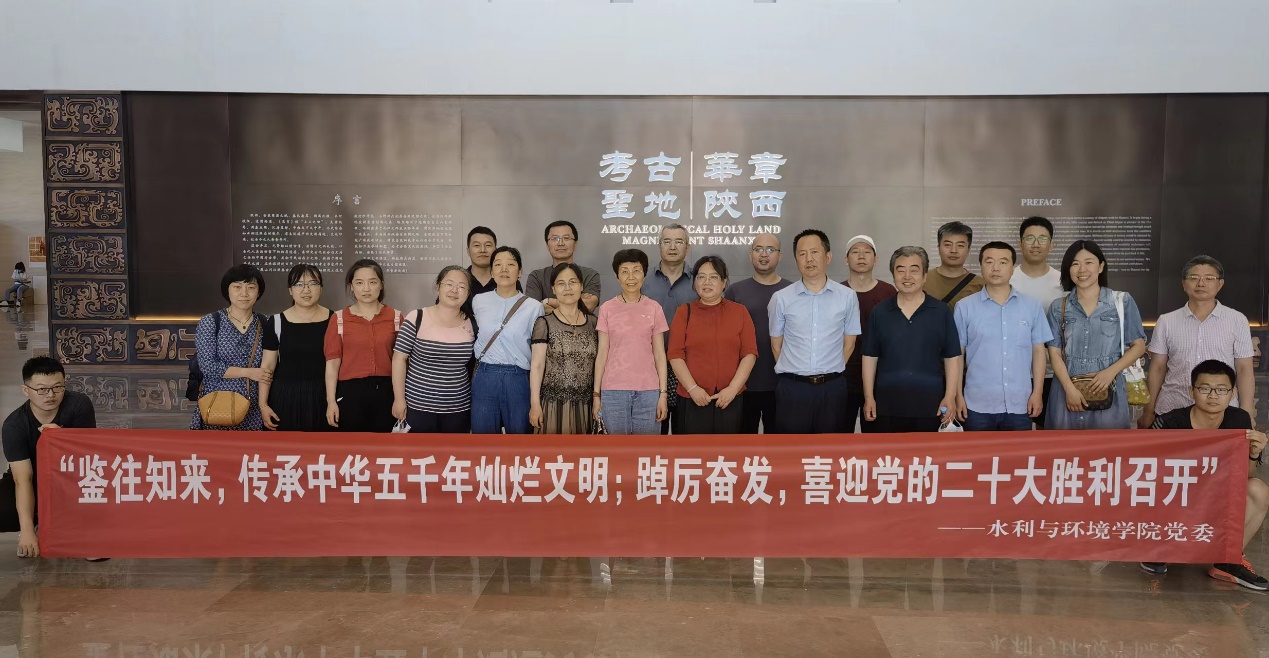 为进一步推动基层党组织和广大党员、干部深入学习贯彻习近平新时代中国特色社会主义思想和党的十九届六中全会精神,巩固拓展党史学习教育成果, 进一步弘扬爱国主义精神。近日,水环学院组织党员走进陕西省考古博物馆,开展“鉴往知来,传承中华五千年灿烂文明;踔厉奋发,喜迎党的二十大胜利召开”主题党日活动。学院院长白波、副书记马明芳和部分党员代表参加活动。