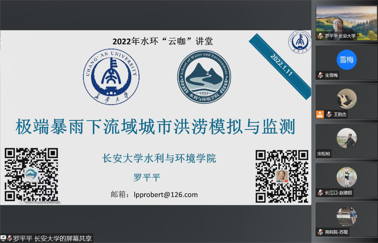 1月11日上午,yl8cc永利官网举办“云咖”讲堂第5讲,邀请罗平平教授为做“极端暴雨下流域城市洪涝灾害模拟与检测预警”报告,我院全体研究生参加,研究生主管魏玮主持。