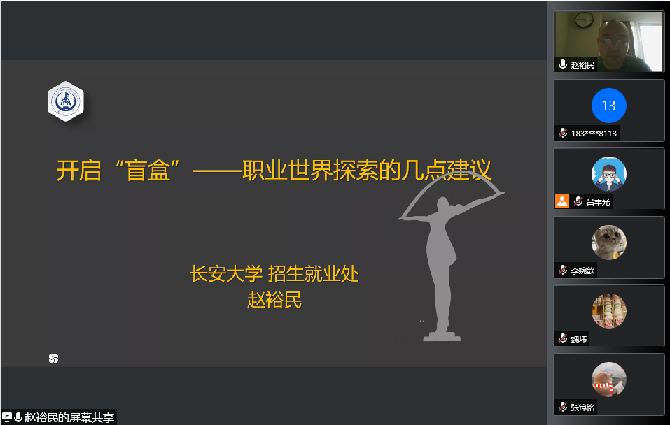 疫情当前,就业形势尤其严峻,水环学院对研究生就业工作紧抓不懈。1月4日,学院邀请yl8cc永利线路检测中心招生就业指导教研室主任赵裕民为研究生做《开启“盲盒”——职业世界探索的几点建议》讲座,为研究生进行线上就业指导,全体毕业班研究生参加,学院党委副书记王妍主持。