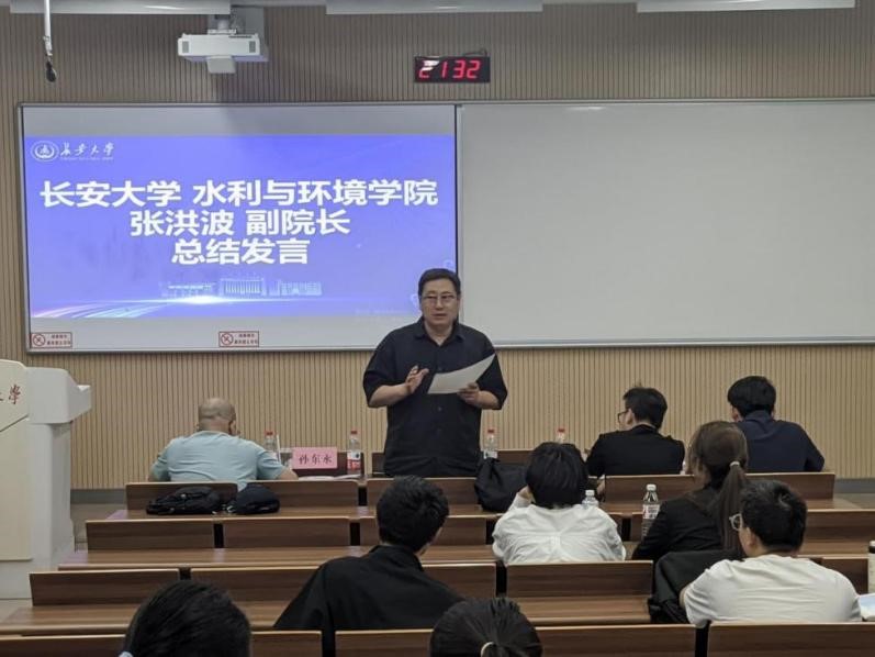 水环学院副院长张洪波老师做了总结发言,他表示非常欣喜看到同学们的作品选题精准,需求贴合实际,智慧化与数字化应用亮点十足,参赛作品难度设定契合能力,但作品的严谨性仍需加强。希望获奖队伍能再接再厉,认真打磨作品,争取在国赛里取得更好的成绩,也希望同学们在比赛过程中要敢于思考,培养勇于攻关困难的勇气,通过水创比赛不断提升自我。