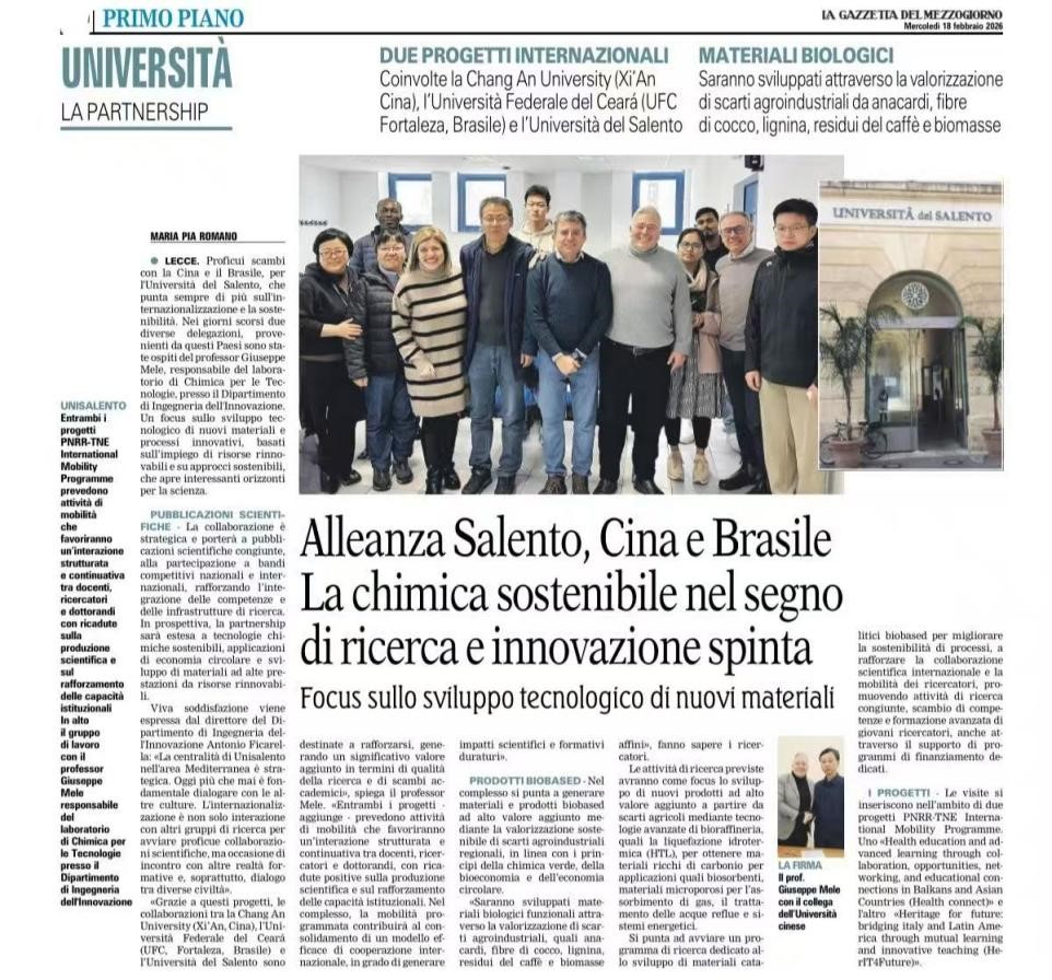 图2 意大利《La Gazzetta del Mezzogiorno (南方公报)》报道yl8cc永利线路检测中心与萨兰托大学合作情况