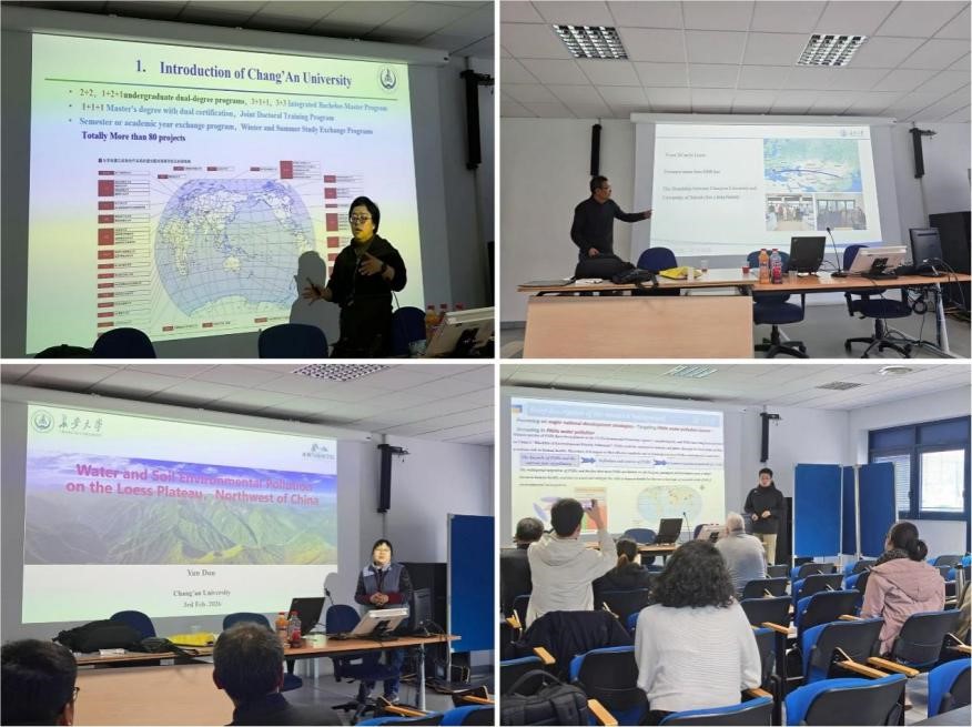 在学术交流环节,双方聚焦领域前沿方向开展成果共享与思想碰撞:王伟教授、吕向菲正高级工程师、魏徵文副教授、窦妍副教授分别围绕新型纳米级过滤材料、电子废弃物中贵金属提取、数据驱动环境治理、黄土高原水土环境污染防控等前沿研究方向作专题报告,系统介绍了水环学院在相关领域的最新研究进展与代表性成果。报告内容引发萨兰托大学师生的高度关注与热烈讨论,双方围绕相关领域关键科学问题、技术转化路径、未来联合研究方向等内容进行了充分交流,进一步拓宽了双方科研合作的边界,为后续跨国家、跨机构的协同创新积累了广泛共识。