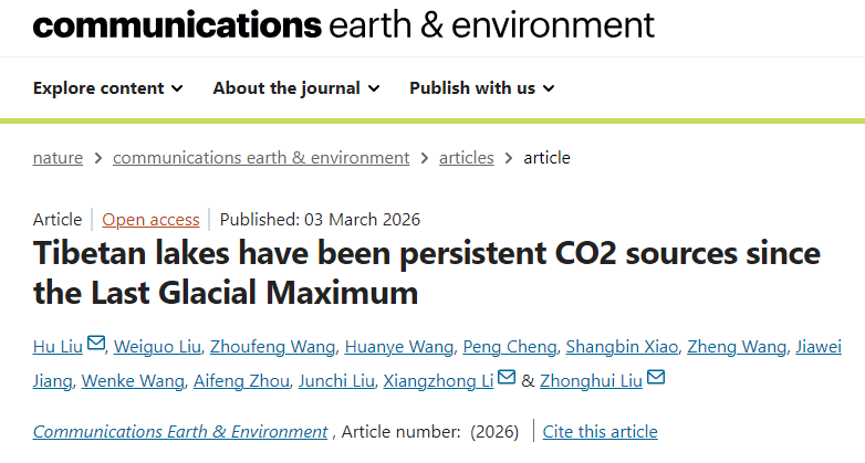 3月3日,我校水环学院科研团队在Nature旗下期刊《地球与环境通讯》(Communications Earth & Environment)发表题为“Tibetan lakes have been persistent CO2 sources since the Last Glacial Maximum”的最新研究成果。yl8cc永利线路检测中心为论文第一完成单位,水环学院刘虎副教授为第一作者,香港大学柳中晖教授和云南大学李祥忠教授为共同通讯作者,其他合作单位包括中国科学院地球环境研究所、三峡大学、兰州大学、中国科学院古脊椎动物与古人类研究所。