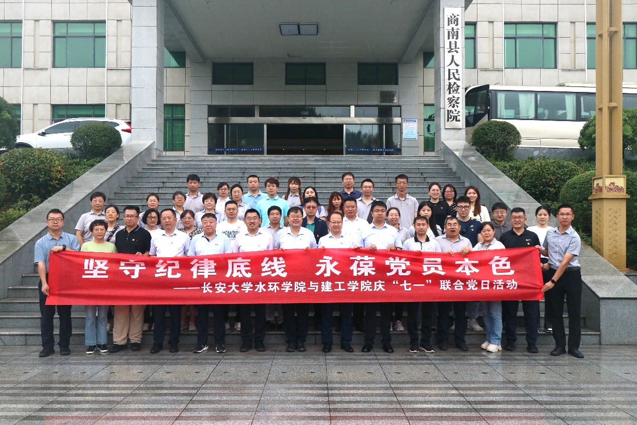为庆祝中国共产党成立103周年,深入推进党纪学习教育扎实开展,7月1日上午,水环学院与建工学院赴商南县廉洁教育基地,联合开展“坚守纪律底线 永葆党员本色”庆“七一”主题党日活动。商南县副县长马飞,商南县环境分局副局长李泉,水环学院党委书记张骞文,院长白波,副书记、副院长荆琳,副院长李培月、段磊,副处级组织员马明芳,建工学院党委书记吴涛,副书记、副院长孟庆鹏,正处级组织员刘明和,副处级组织员闫秀萍等一行参加活动。
