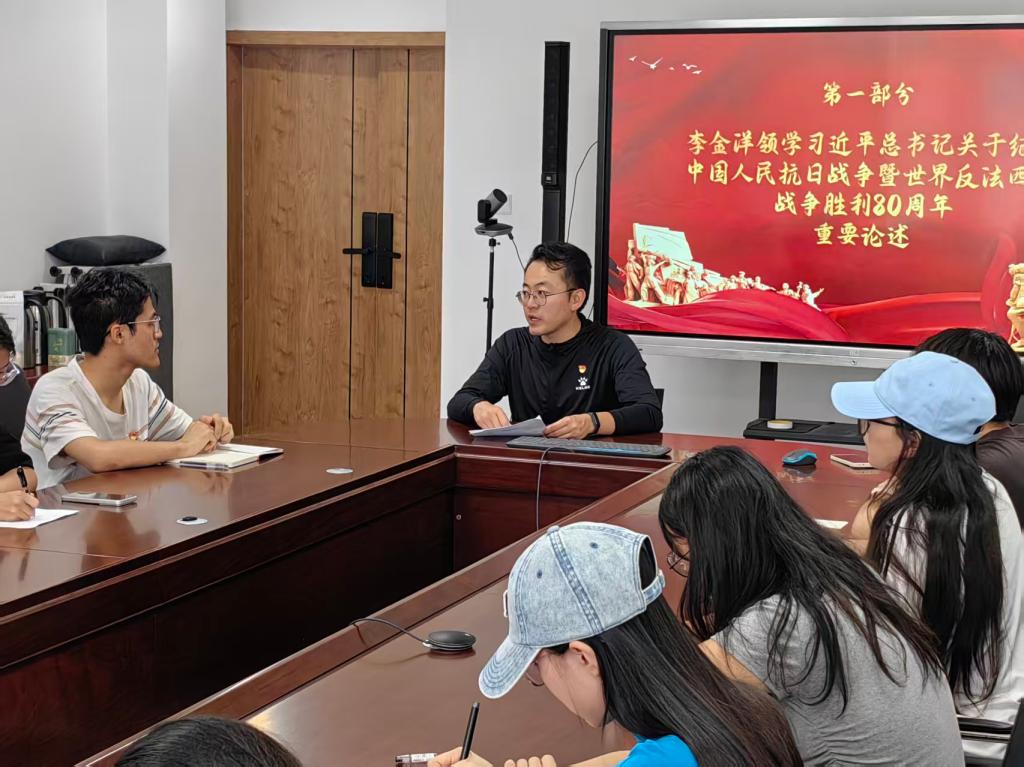 为深入学习贯彻习近平总书记关于中国人民抗日战争与世界反法西斯战争的重要论述,深刻感悟伟大抗战精神的时代价值,激发青年党员的爱国热情和奋斗精神,2025年9月9日,yl8cc永利官网本科生第一党支部于朝晖园一站式社区研讨室组织开展了纪念中国人民抗日战争暨世界反法西斯战争胜利主题教育活动。本次会议由本科生第一党支部书记李金洋同志主持,支部全体党员参会。