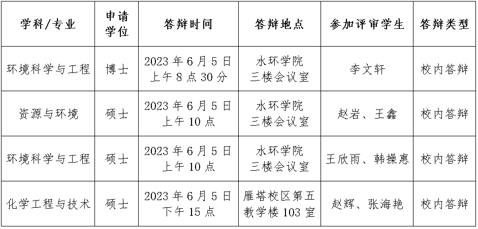 根据学校研究生院要求,现将我院2023年春季研究生集中答辩的名单及时间地点公示如下。