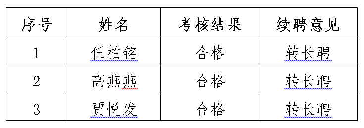 根据《yl8cc永利线路检测中心新进教学科研类人员准聘-长聘管理办法》(长大党〔2022〕84号)文件精神,学校组织开展了2023年第二批准聘制教学科研类人员聘期考核工作。经个人总结、材料审核、学院考核并提出考核结果建议、学校审核,现将学院新进教学科研类人员聘期考核结果及续聘意见(2023年第二批)公示如下: