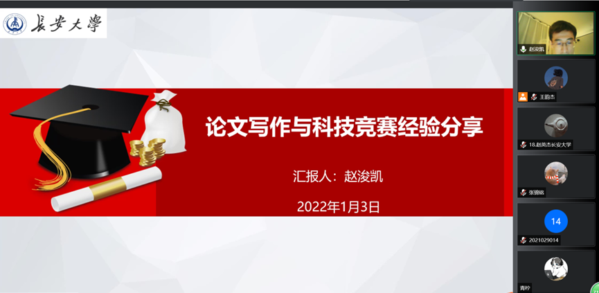 疫情当前,使命在肩,“停课不停学”是保障研究生正常科研学习的有力方式。1月3日,学院举办水环“云咖”讲堂第二讲,本次讲座由博士研究生国奖获得者赵浚凯做主题为“论文写作与科技竞赛经验分享”的报告,我院全体研究生参加,研究生培养与管理主管魏玮主持。