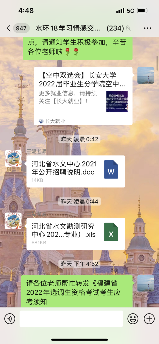 为精准掌握学生就业动态,水环学院毕业班辅导员王妮、孔德晨建立就业台账,全面摸底学生就业信息,包括已签约、求职中的(包括考研失利转而求职)、考公、出国及参军入伍等,充分了解毕业生择业过程中的问题,准确掌握困难学生的基本状况、就业倾向和意愿,精准推荐就业信息;针对有就业需求的学生,辅导员集合全部资源,整理往届就业信息提供参考,形成育人合力,切实帮助学生迈好人生的关键一步;统筹就业政策,在变与不变中探寻规律,通过积极的措施促进学生就业;针对不同学生进行“点对点”帮扶,关注学生心理状况,及时纾解学生就业压力,加强毕业生心理辅导,保证毕业生的就业安全。